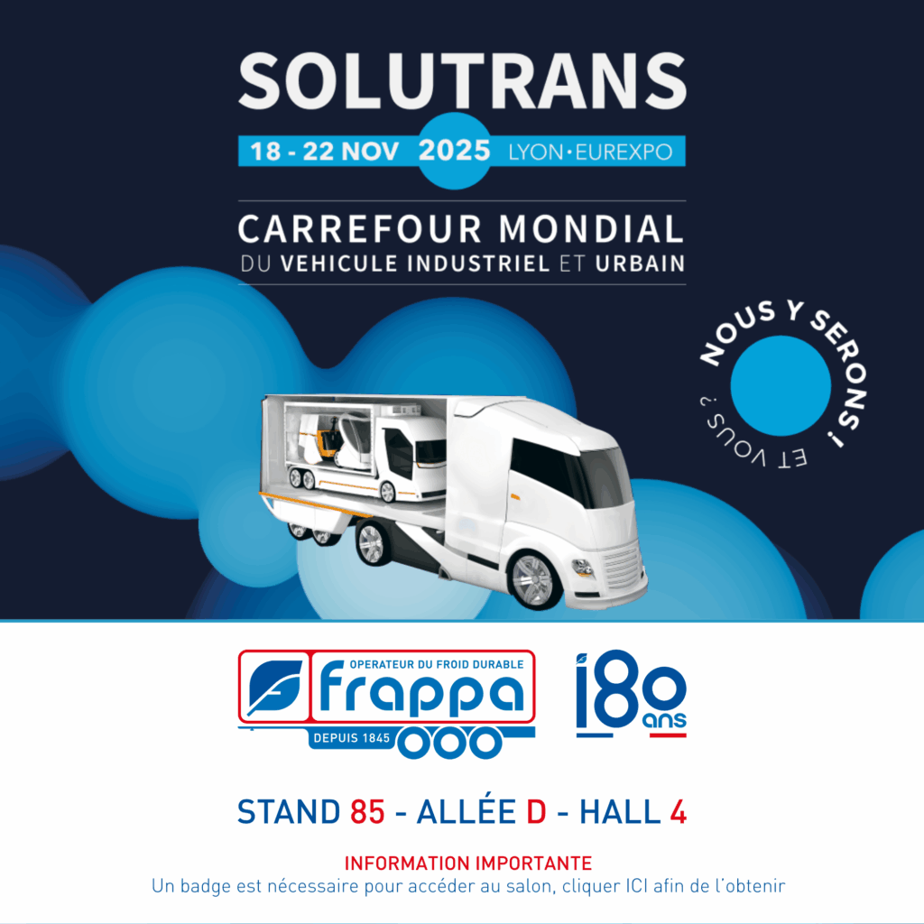 Carrossier-constructeur, FRAPPA produit principalement des véhicules frigorifiques, du 3,5t à la semi-remorque. L’offre s’étend également à la location, la réparation, mais aussi au négoce de véhicules d’occasion et de pièces détachées. Engagée et soucieuse de l’impact environnemental de ses véhicules, l’entreprise a développé ses propres groupes cryogéniques (azote liquide pour les poids lourds et neige carbonique pour les véhicules utilitaires légers). Ceci garantit la sécurité alimentaire, la sérénité sociale (0 bruit, 0 nox, 0 CO2), et la simplicité de conduite pour une solidarité client.
